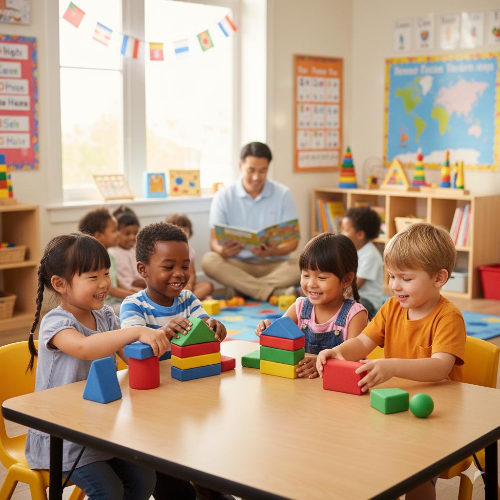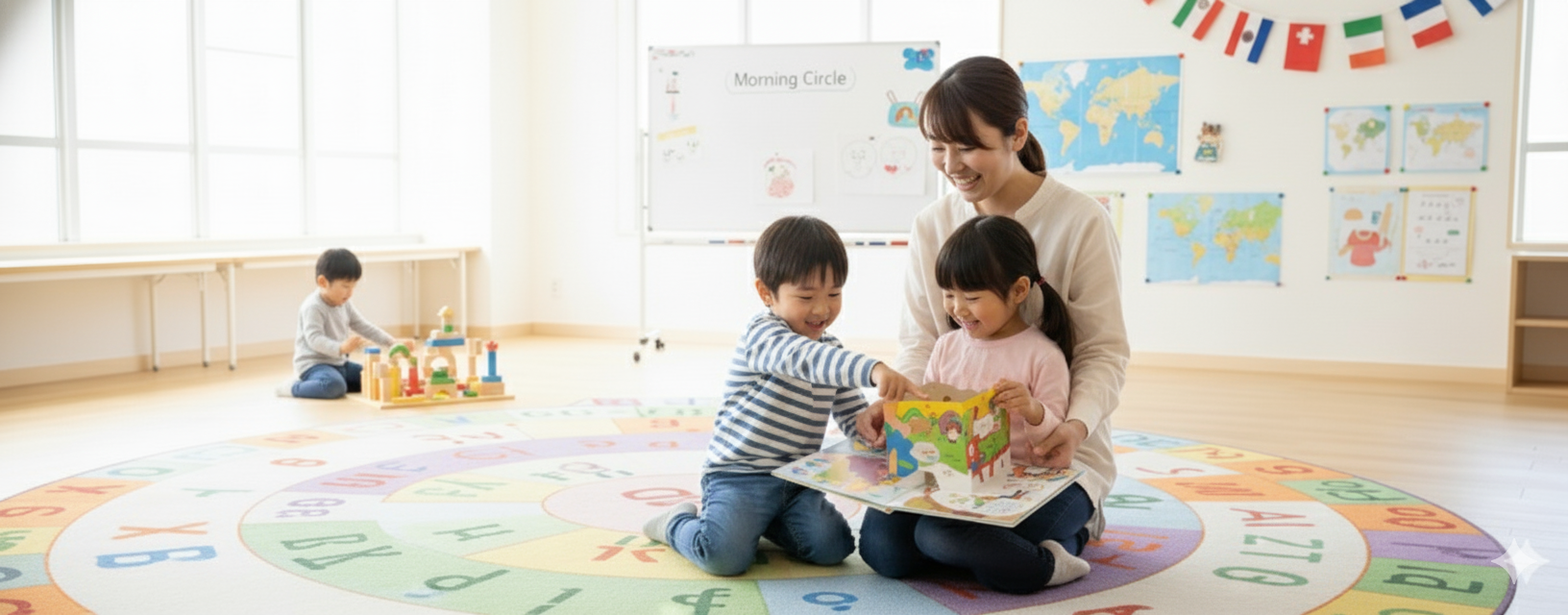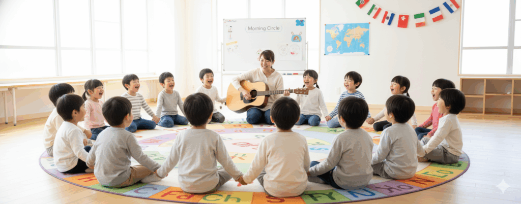 - 完全な英語環境: 登園から降園まで、ネイティブ講師がすべての活動を英語で行います。遊び、歌、運動、食事といった生活そのものが英語学習の場となります。