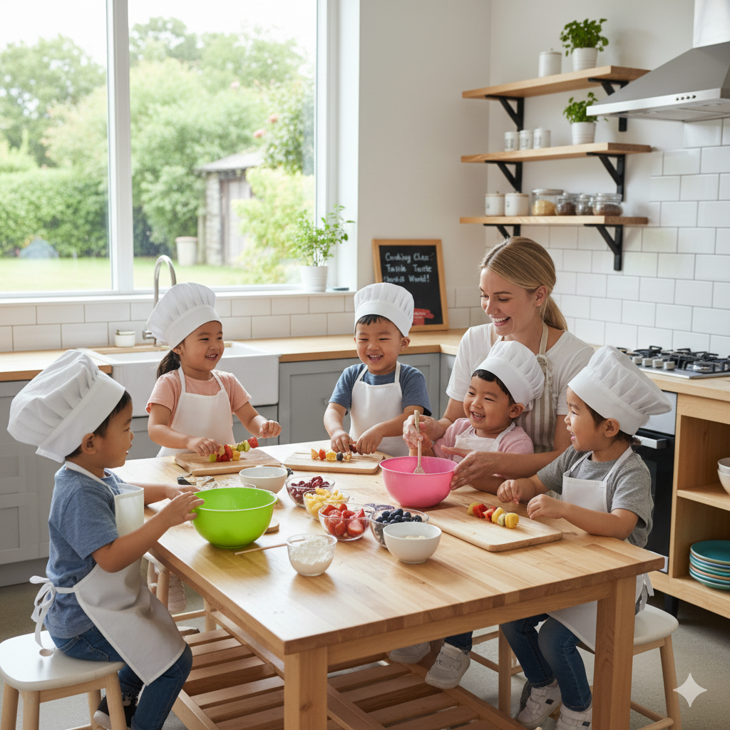 - Cooking Class: 世界の料理を通じて食文化を学びながら、チームで協力する**協調性(Unity)**と実生活の科学を学びます。